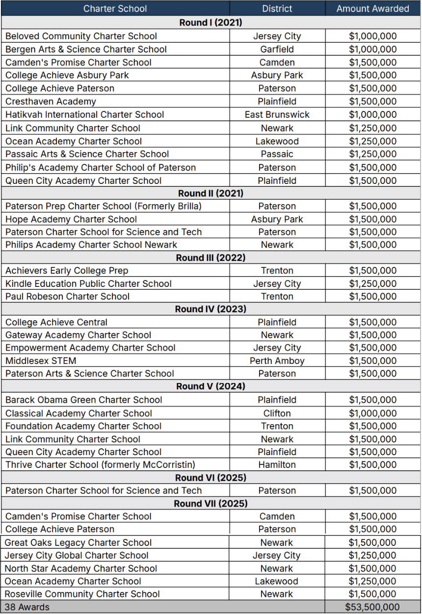 Many thanks to all New Jersey charter schools who participated in our subgrant competition rounds.
